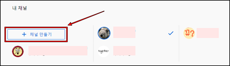'채널 만들기' 메뉴를 볼 수 있습니다.